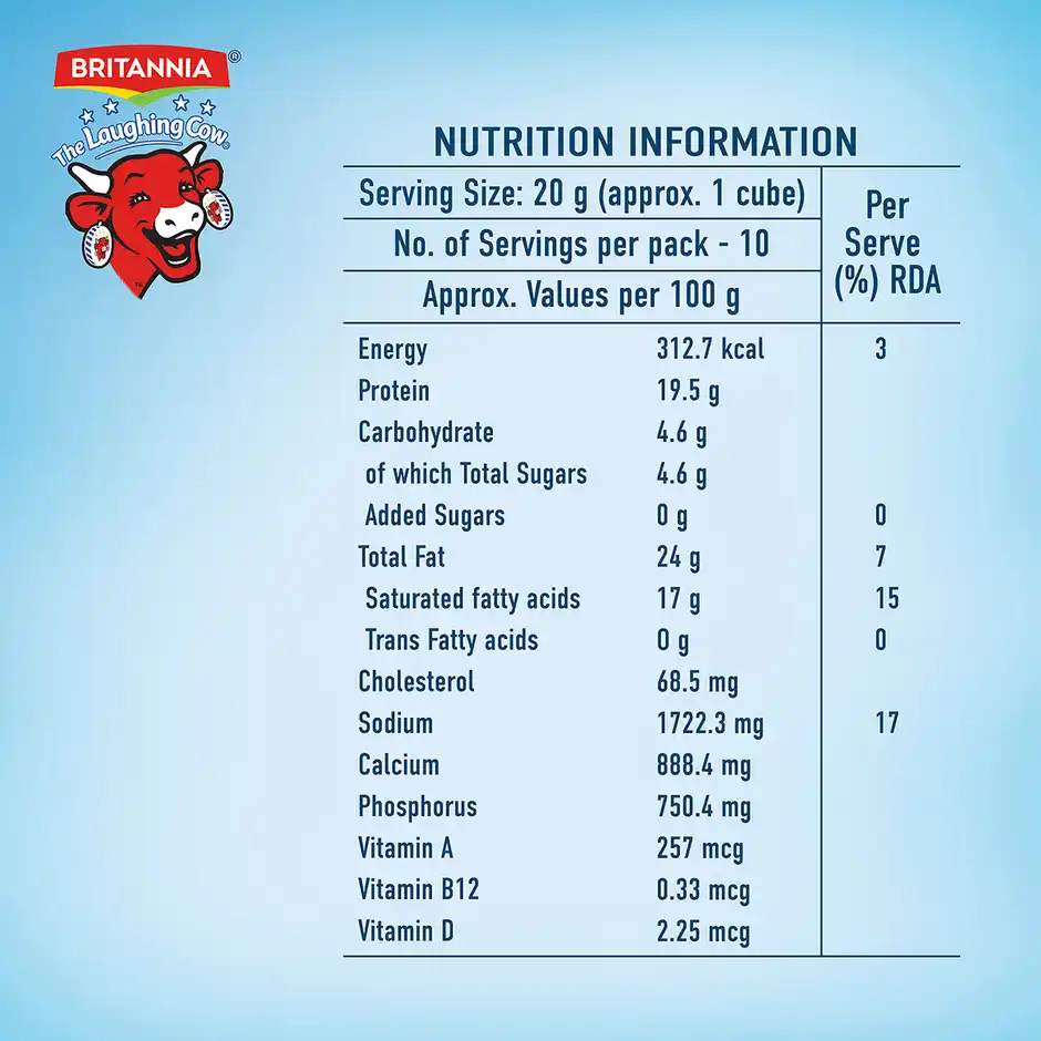Cheese, Water, Milk Products (Milk Solids, Butter), Emulsifiers [331(Iii), 339(Iii), 452(I)], Vitamins and Mineral, Acidity Regulator (330), Iodized Salt, Preservatives (200 and 235)