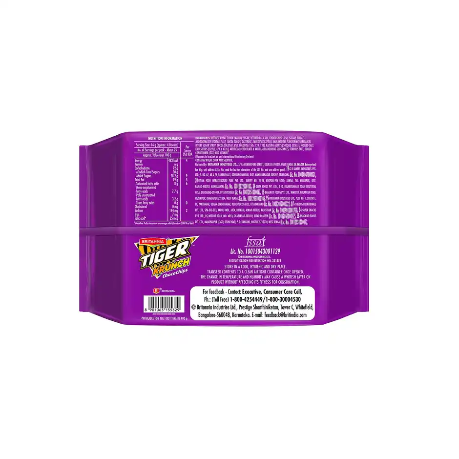 Britannia Tiger Krunch Biscuits Loaded With Choco Chips (400 g)