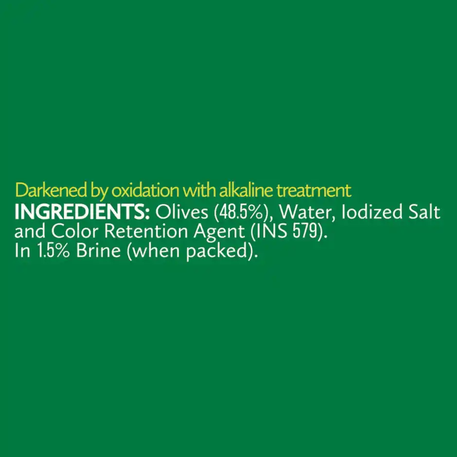 Olives (48.5%), Water, Iodized Salt, Color Retention Agent (Ins 579)