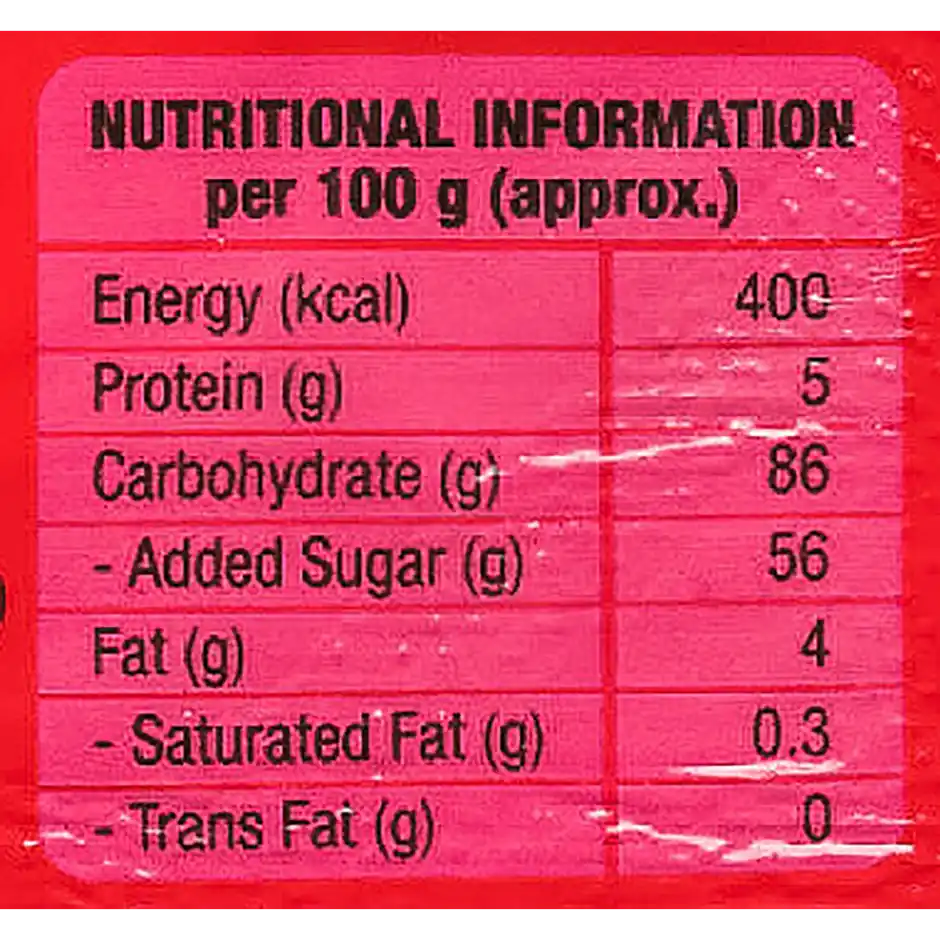 Energy (kcal) 400.0, Protein (g) 5.0, Carbohydrate (g) 86.0, Added Sugar (g) 56.0, Fat (g) 4.0, Saturated Fat (g) 0.3, Trans Fat (g) 0.0